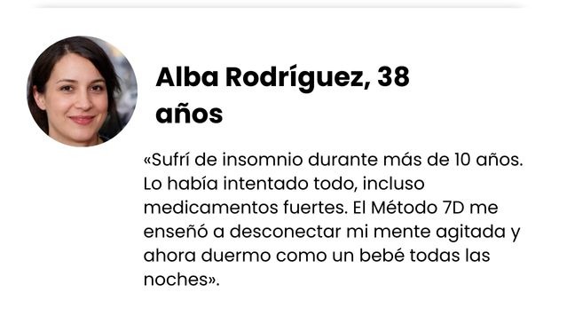 Todo esto es posible con el Método 7D de Reprogramación Nocturna, una forma natural y probada de resolver tus problemas de sueño de una vez por todas.
